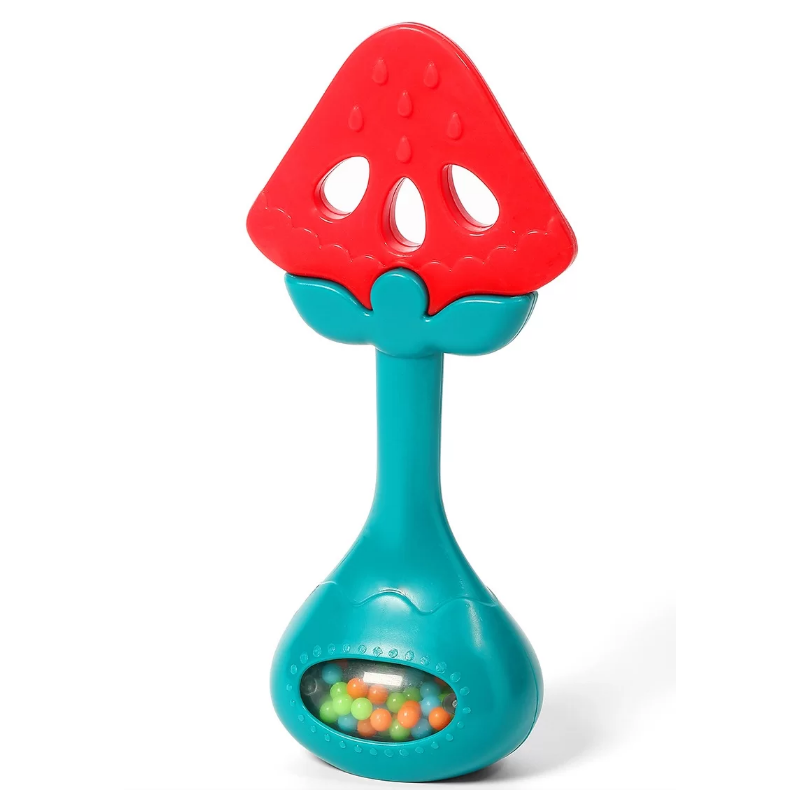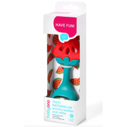 Oryginalny gryzaczek z grzechotką Babyono został zaprojektowany z myślą o potrzebach najmłodszych. Kształt zapewnia wygodne trzymanie przez drobne rączki niemowląt. Gryzienie koi w czasie ząbkowania, elastyczny materiał o pofałdowanej strukturze idealnie masuje dziąsła dziecka. We wnętrzu znajdują się kulki grzechoczące przy każdym ruchu, zachęcają do ćwiczeń i zabawy, stymulując rozwój dziecka.
