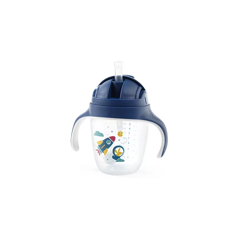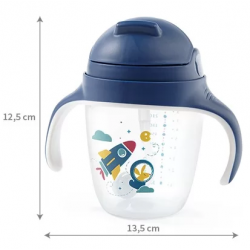 Kubek ze słomką idealnie sprawdzi się w domu i podróży. Jego niewielkie wymiary sprawiają, że możesz zabrać go ze sobą wszędzie gdzie chcesz, nie martwiąc się, że napój się rozleje. Kubek jest idealny do nauki samodzielnego picia. Słomka porusza się wraz z płynem wewnątrz bidonu, dzięki czemu Twój maluch może pić pod każdym kątem, nawet w pozycji półleżącej, czy przechylając kubek do góry dnem. Kubek niekapek jest wyjątkowo szczelny. Jego dwukierunkowy zawór w słomce chroni go przed wylaniem i przeciekaniem. Poręczne, idealnie wyprofilowane uchwyty pozwalają Twojemu dziecku na wygodne trzymanie kubka i pełną kontrolę podczas przechylania i dozowania picia.