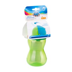Praktyczny, kolorowy bidon dla dzieci, które opanowały umiejętność samodzielnego picia. Wyposażony w składaną, silikonową rurkę. Ruchoma część nakrętki pozwala w łatwy i wygodny sposób schować rurkę, zapobiegając niekontrolowanemu wylaniu się napoju. Wyprofilowany kształt ułatwia utrzymanie bidonu w małych, dziecięcych rączkach. Bidon wykonany został z bezpiecznego tworzywa bez BPA. Pojemność 370ml. Przeznaczony dla dzieci powyżej 12.miesiąca życia.