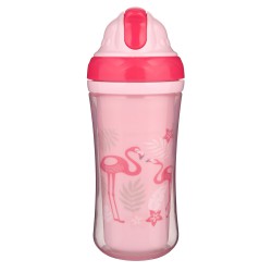 Praktyczny bidon ze składaną silikonową rurką przeznaczony jest dla dzieci powyżej 1-go roku życia, które opanowały umiejętność samodzielnego picia. Sprawdza się w podróży i na spacerze. Wyprofilowany kształt ułatwia utrzymanie bidonu w małych dziecięcych rączkach. Ruchoma część nakrętki pozwala schować rurkę, kiedy dziecko nie pije z kubka.