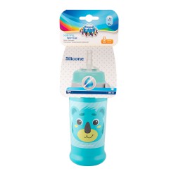 Bidon z miękkim, silikonowym ustnikiem, wyposażony w praktyczną przykrywkę chroniącą przed zabrudzeniem. Ustnik jest połączony z rurką, która ułatwia picie napoju z dna bidonu. Ustnik niekapek ma wbudowaną membranę, która zapobiega rozlewaniu napoju i umożliwia kontrolę intensywności wypływania płynu. Posiada wygodny uchwyt umożliwiający przymocowanie bidonu do paska. Bidon wykonany z bezpiecznego tworzywa bez BPA. Pojemność 350ml. Przeznaczony dla dzieci powyżej 12.miesiąca życia.