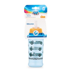 Kolorowy bidon z miękkim, silikonowym ustnikiem, który nie podrażnia delikatnych dziąseł i ząbków dziecka. Posiada praktyczną przykrywkę chroniącą ustnik przed zabrudzeniem, dzięki czemu sprawdzi się na spacerach i w podróży. Silikonowy ustnik jest połączony z plastikową rurką, która kończy się przy dnie bidonu i ułatwia picie napoju. Ustnik niekapek ma wbudowaną membranę, która zapobiega rozlewaniu napoju i umożliwia kontrolę intensywności wypływania płynu w zależności od siły ssania. Wyposażony w wygodny uchwyt umożliwiający przymocowanie bidonu do torby lub paska. Możliwość dokupienia wymiennego ustnika z rurką. Bidon wykonany z bezpiecznego tworzywa bez BPA. Pojemność 350ml. Przeznaczony dla dzieci powyżej 12. miesiąca życia.