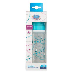 Antykolkowa butelka EasyStart LET'S CELEBRATE jest lekka, trwała i przejrzysta. Została wykonana z bezpiecznego polipropylenu wolnego od BPA. Posiada silikonowy smoczek 3m+ przypominający kształtem pierś mamy. Dzięki temu umożliwia łatwe łączenie karmienia piersią i butelką. Jest wyposażona w skuteczny system antykolkowy. Butelka o pojemności 240ml.