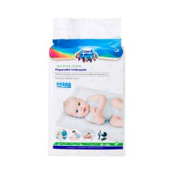Wielofunkcyjne podkłady higieniczne z wodoodporną warstwą izolacyjną, doskonale zabezpieczają pościel i materac przed zabrudzeniem. Miękka, zewnętrzna powłoka jest delikatna dla skóry. Podkład posiada super chłonny wkład, który zatrzymuje wilgoć wewnątrz i dodatkowo neutralizuje zapachy. Doskonale sprawdzi się podczas codziennych zabiegów pielęgnacyjnych dziecka, nauce odpieluchowania oraz w czasie połogu. W opakowaniu 10 sztuk. Rozmiar: 90x60cm.