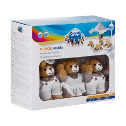 Kolorowa karuzela z pozytywką MISIE Z BALDACHIMEM przeznaczona jest dla dzieci, które jeszcze nie poruszają się samodzielnie. Posiada wygodny uchwyt, dzięki czemu można ją sprawnie zamontować na łóżeczku. Kolorowe zabawki przyciągają uwagę malucha, a miłe dźwięki pozytywki uspokajają go i ułatwiają zasypianie. Misie można odpiąć i podać dziecku do zabawy. Karuzela nie wymaga baterii, ponieważ pozytywkę nakręca się ręcznie. Przeznaczona dla dzieci w wieku 0m+.