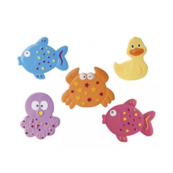Praktyczny zestaw antypoślizgowych mini mat do kąpieli do użytku w wanienkach dziecięcych, dużych wannach i kabinach prysznicowych. Zapobiegają poślizgnięciu się dziecka podczas kąpieli. Posiadają specjalne przyssawki, które uniemożliwiają przesuwanie się mat. Wykonane zostały z wysokiej jakości gumy. Atrakcyjny kształt mini mat z pewnością zachęcą dziecko do kąpieli. Wymiary maty ok. 12x10cm.