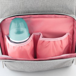 Plecak idealny na spacer, spotkanie lub wyjazd z dzieckiem. Łączy w sobie ciekawy design, elegancję i dużą praktyczność. Pomieści wszystkie niezbędne akcesoria i ulubione zabawki maluszka.