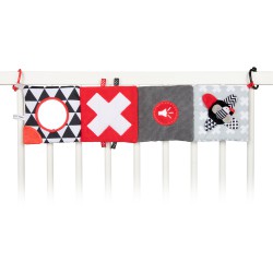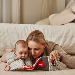 Kontrastowa książeczka edukacyjna z kolekcji SENSORY TOYS kryje wiele niespodzianek, które zajmą dziecko na długi czas. Wspiera rozwój maluszka już od pierwszych dni. Stymuluje wzrok dzięki czerwieni i czerni, kolorom które niemowlę widzi jako pierwsze.