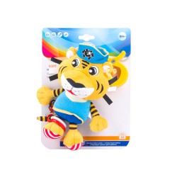 Kolorowa zabawka PIRACI z praktycznym zaczepem do mocowania na wózku lub łóżeczku. Wykonana z miękkiego, przyjmnego w dotyku materiału. Posiada interaktywne elementy zachęcające dziecko do zabawy. Została wyposażona w grzechotkę, piszczałkę oraz elementy szeleszczące. Zabawka doskonale stymuluje rozwój koordynacji wzrokowo-słuchowej i motorycznej. Przeznaczona dla dzieci w wieku 0m+.