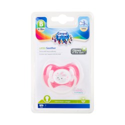 Smoczek uspokajający BUNNY&COMPANY wykonany z najwyższej jakości kauczuku. Wyposażony został w gumkę o okrągłym kształcie. Dzięki specjalnym otworom wentylacyjnym na tarczce, smoczek nie odparza delikatnej buzi dziecka. Posiada świecący uchwyt, który ułatwia znalezienie smoczka w ciemności. Nie zawiera BPA. Dostępny w kilku kolorach. Przeznaczony dla dzieci w wieku 6-18 miesięcy.