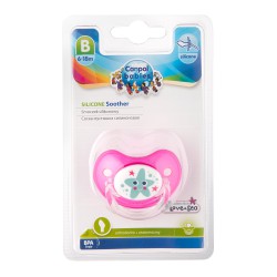 Smoczek uspokajający NATURE wykonany z najwyższej jakości, bezzapachowego silikonu. Posiada tarczkę z brokatem. Wyposażony został w gumkę o anatomicznym kształcie. Smoczek dobrze odpowietrza się, dzięki specjalnym otworom wentylacyjnym na tarczce. Nie zawiera BPA. Dostępny w kilku kolorach. Przeznaczony dla dzieci w wieku 6-18 miesięcy.
