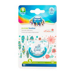 Smoczek uspokajający WILD NATURE wykonany z najwyższej jakości, bezzapachowego silikonu. Wyposażony w gumkę o anatomiczny kształcie. Zapewnia swobodne oddychanie i połykanie śliny. Smoczek dobrze odpowietrza się, dzięki specjalnym otworom wentylacyjnym na tarczce. Nie zawiera BPA. Dostępny w kilku kolorach. Przeznaczony dla dzieci w wieku 6-18 miesięcy.