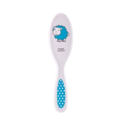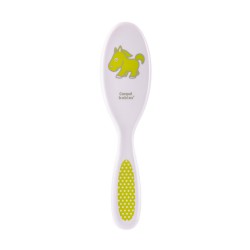 Szczotka do włosów z grzebykiem do codziennej pielęgnacji włosów dziecka. Grzebień posiada zaokrąglone ząbki, które nie podrażniają skóry. Szczotka z miękkim, sztucznym włosiem delikatnie masuje główkę malucha, nie elektryzując włosów.