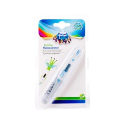 Termometr nowej generacji w ciągu kilku minut zmierzy temperaturę ciała dziecka. Wyposażony w wyświetlacz cyfrowy umożliwia precyzyjne odczytanie temperatury. Wyposażony w sygnał dźwiękowy, który powiadomi o zakończeniu procesu mierzenia. Zakres pomiaru 32.0-42,9°C. W zestawie praktyczne etui do higienicznego przechowywania termometru.