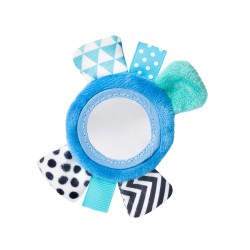 Kolorowa zabawka, przypinana na rączkę dziecka tak jak zegarek, zachwyci każdego malucha. Delikatna opaska idealnie dopasowuje się do małej rączki, a zapięcie na rzep zapobiega zgubieniu zabawki. Zabawka nie podrażnia delikatnej skóry dziecka. Szeleszczące elementy i kolorowe wstążeczki przyciągają uwagę i zachęcają do nauki chwytania, a lusterko - wzbudza ciekawość maluszka. Różne faktury materiału stymulują zmysł dotyku dziecka. Przeznaczona dla dzieci w wieku 0m+.