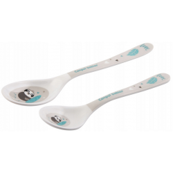 Zestaw łyżeczek do karmienia z kolekcji EXOTIC ANIMALS z wesołymi, kolorowymi nadrukami uatrakcyjni dziecku każdy posiłek. Łyżeczki wykonane został z melaminy, tworzywa odpornego na zarysowania. Posiadają zaokrąglony kształt, dzięki czemu nie podrażniają delikatnych dziąseł dziecka. Zestaw składa się z dwóch łyżeczek: małej i dużej. Przeznaczony jest dla dzieci powyżej 9. miesiąca życia.