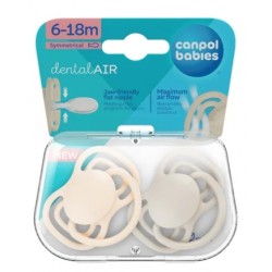 CANPOL BABISE Smoczek silikonowy 6-18m symetryczny DENTAL AIR 2szt. krem 23/229