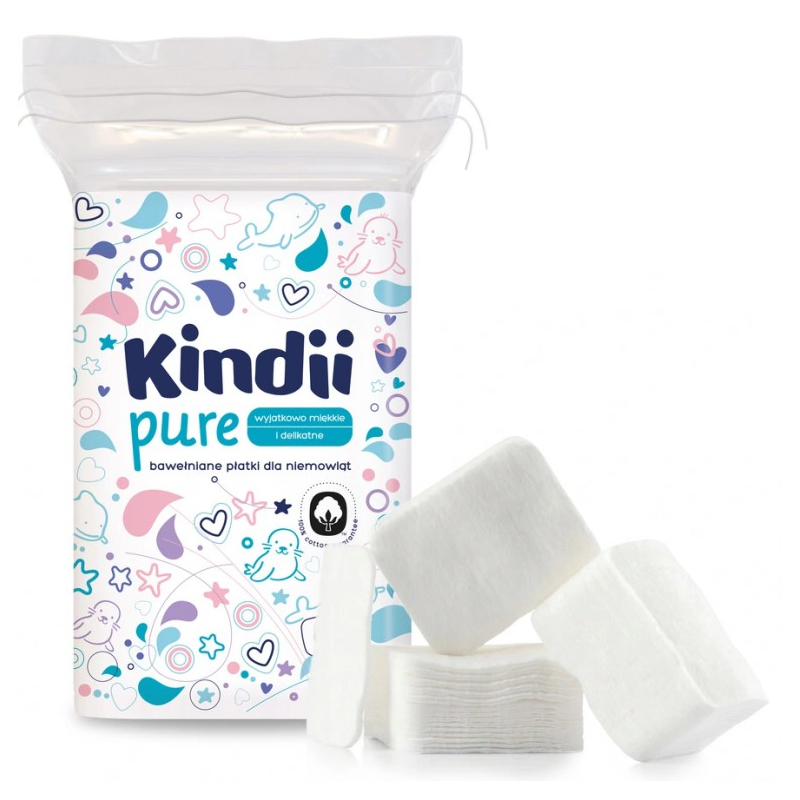 Płatki kosmetyczne Kindii Pure są miękkie, mają delikatne brzegi i nie pozostawiają włókien. Duży i wygodny kształt umożliwia codzienną pielęgnację niemowląt i dzieci.