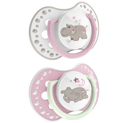 LOVI Smoczek silikonowy dynamiczny 2 szt. Night&Day Girl Hippo 3-6m 22/810girl_H